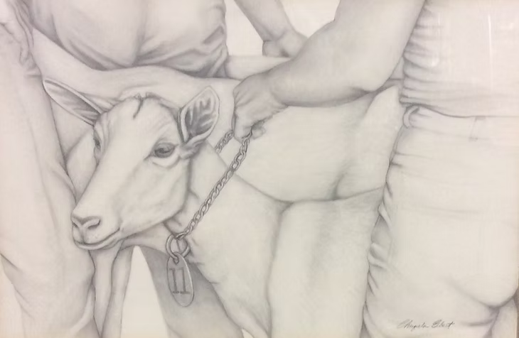 Chicqiela (Chic) Elbert-Velazco is a retired teacher who taught art at Anderson Community School Corporation from 1976 to 2006. She also worked as a substitute art teacher for 10 years and two years as an adjunct art professor at Anderson University. She continues to teach art classes for nonprofit organizations on occasion. She is currently devoting more time to creating her own art in her home studio located in Alexandria, IN. She is influenced by her rural surroundings and animals and prefers drawing, painting, photography, printmaking, and lampwork glass beads to create her images.